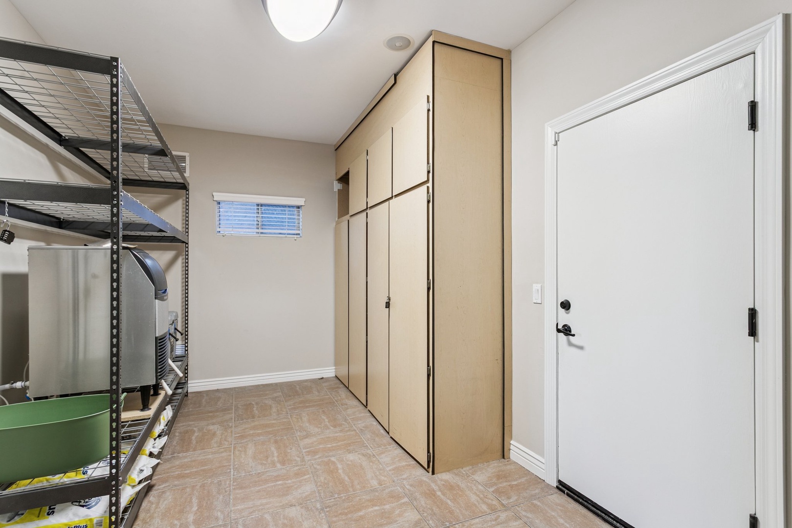 Spacious garage with gleaming epoxy floors and ample storage - your rental includes secure parking and room for all your vacation gear.